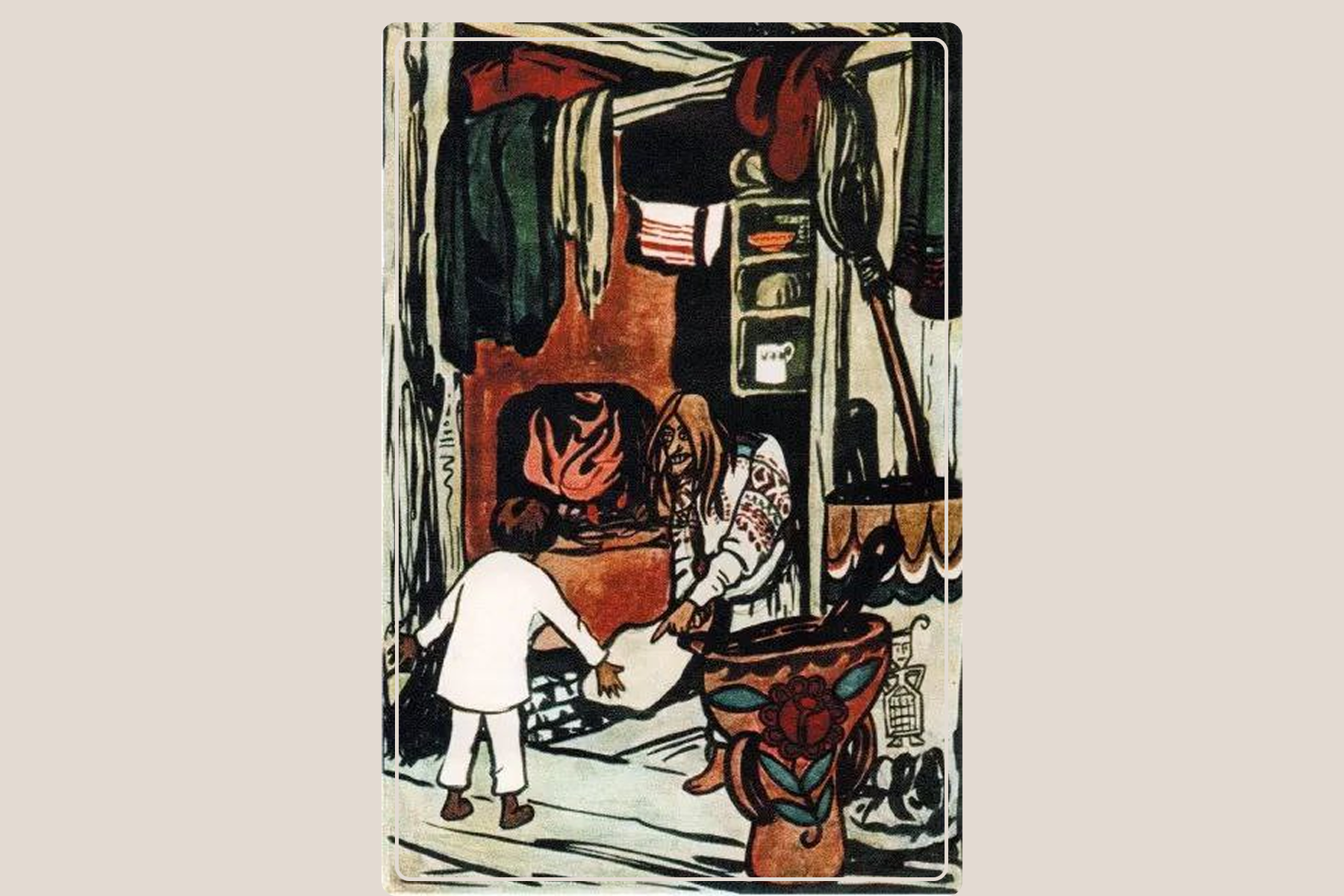 «Накормила-напоила и спать уложила» – известная речевая тема[1] эпизода действительного или мнимого «гостеприимства» в сюжетах русской волшебной сказки, в которых фигурирует Баба Яга в различных её типологических ипостасях: нередко встречаясь, она вплетается в структуру образа персонажа, заведомо ожидается как необходимый компонент его художественной организации, выступает обязательным элементом его представления в реализации некоторого сюжетного узора – морфологическим общим местом, вне которого персонаж как таковой не мыслится.