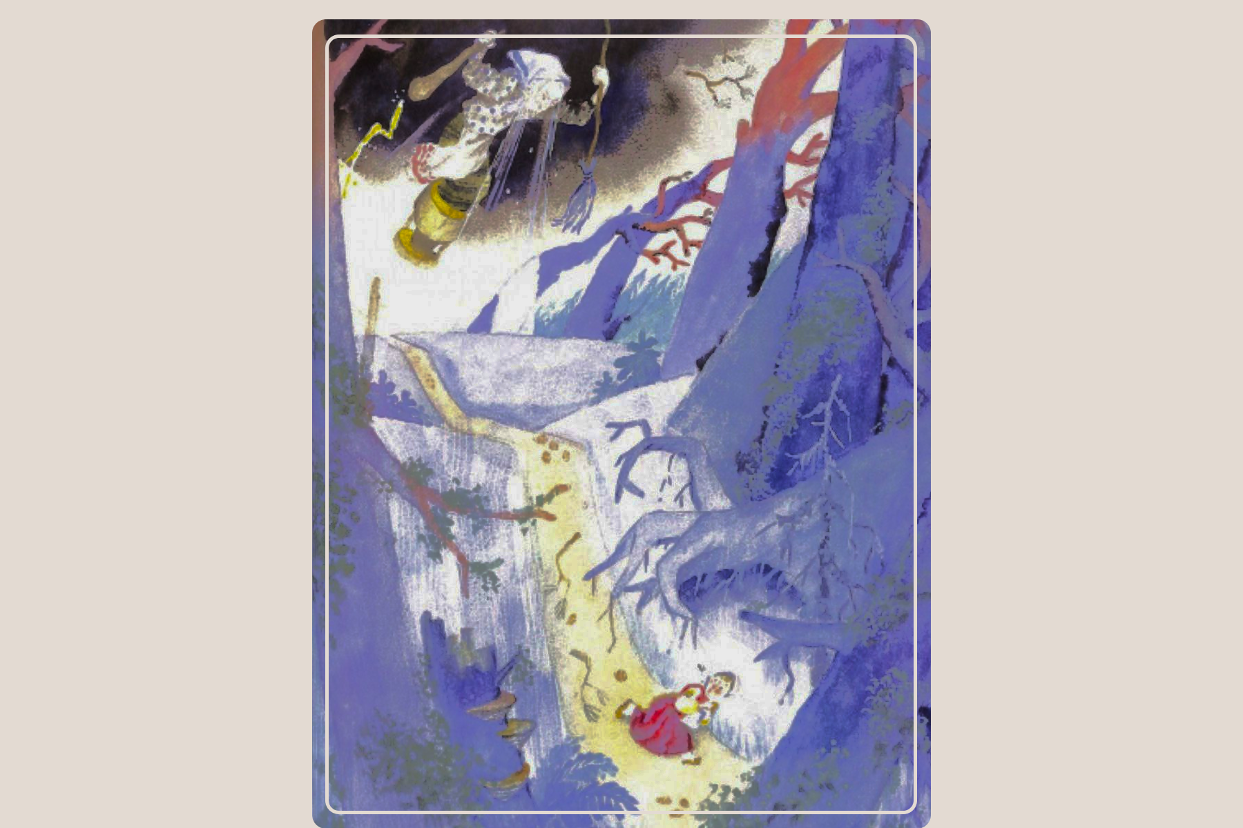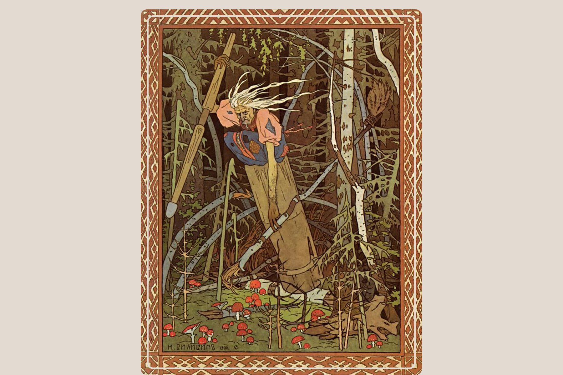 Изображение Бабы Яги в иллюстрации И. Билибина к русской народной сказке «Василиса Прекрасная», 1900 г.